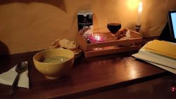 The frost started early today, thus I made a little fire in the open hard of the chalet. And because I could, I took a class of wine along, near the fireplace. A good start for a great night.