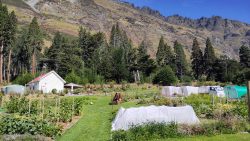 From there, we went to the veggie gardens. The farm guide told us about how they try to find the best methods to produce enough fruits and veggies for their guests, on a soil that naturally is not very rich, on a hillside, up here in the mountains. She told us about successes and learning points. Next was de orchard and the bee-keeping. Most native bees are not that much honey producers, though they choose European honey bees. Would native bees do the pollination job well enough, anyway?