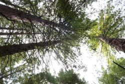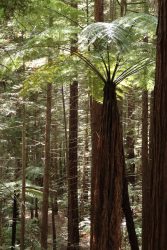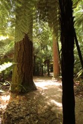 Redwood forests in New Zealand are, basically, tree fields, planted to harvest at some point. Started as monoculture as most planted “woods” do. TThis forest was planted between 100 and 150 years ago. New Zealands proud – ferns in al variations – found there way into these fields, growing well under the trees. The trees are gigantic! Quite impressive … and then, these trees are not even in puberty, agewise… The tallest tree (125 years old) here is now about 75m high, with estimat to produces enough timber to build a little more than 3 houses. At the entrance: a slide of a tree cut in down in 1952, which started to grow before the birth of Jesus. Just as a reference.