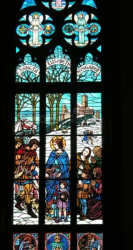 Already the drive up from Rio to Petrópolis was amazing! Just outside the city the highway changed in mountainroad with beautiful views. It was impressive how fast we gained altitude. Along the road, a lot of little (coffee) shop and restaurants, places to rest and enjoy the surroundings. Finally, we arrived in Petrópolis, welcomed by a port accross the street. Along the streets you see low buildings, mostly cosy houses in yards, some better preserved then others, mostly the lush architecture of a summer residence. Really a great city to explore and enjoy! Every view against the backdrop of green mountains, the green in the road along channeled rivers, colours added by people and merchandise. The hotel, next to the summer places, which now is a museum, is housed in a historical building from the late 19th century, still a bit colonial style. The room wasn’t ready yet, thus a I took a walk, visiting the garden of the summer palace and went over to the cathedral. There, it took me completely by surprise: one of the staineglass windows showed St. Elizabeth of Hungary, in a snowy landscape with a castle. A castle, I know very well: the Wartburg in Eisenach, abaout 30 km from the village, my father was from. Can you imagine?