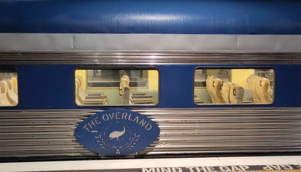 The train is advertised with great views along the route. Unfortunatly, I had a seat with basically no view at all. Thus, I asked the attendant if I could change seats, as there were other seats not taken, yet. She would look into it. No answer for two hours. Thus, I tried to find her again, didn’t find her, but another attendant. She showed me a seat, where she was not sure if it would be available the whole ride. Anyway. Now, at least, I could watch the scenary. Even saw some kangaroo, an emu along the tracks. With the New Zealand train rides in mind, this one isn’t that spectacular. Still, I love to see the landscape passing by, with nothing to worry about. 10 hours is quite a movie 🙂